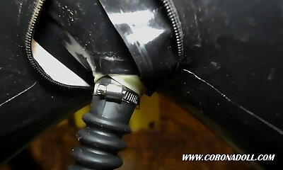 Bondage latex and house work