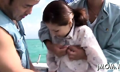 Mind sucking Asian perverts fuck one skinny Asian teen